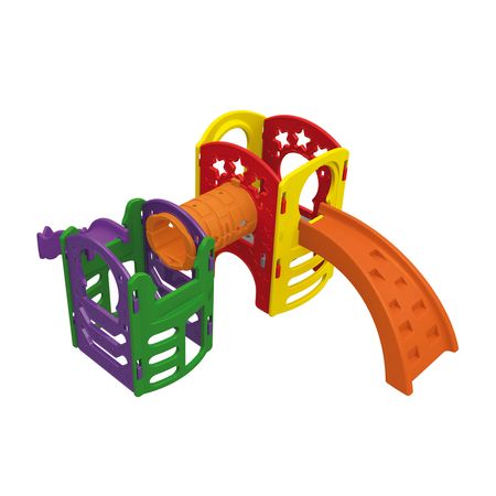 Playground Xalingo, um parquinho na sua casa, escola ou condomínio. Super resistente e com múltiplas atividades. Possui um sistema de fácil montagem, dispensando a utilização de elementos de fixação. Composto por 2 módulos básicos, permite a montagem infinita do brinquedo com a aquisição de novas peças, deixando ele do tamanho que você quiser. Este modelo comporta parede de escalada, escorregador curvo, túnel e tobogã. Indicado para crianças a partir de 3 anos.